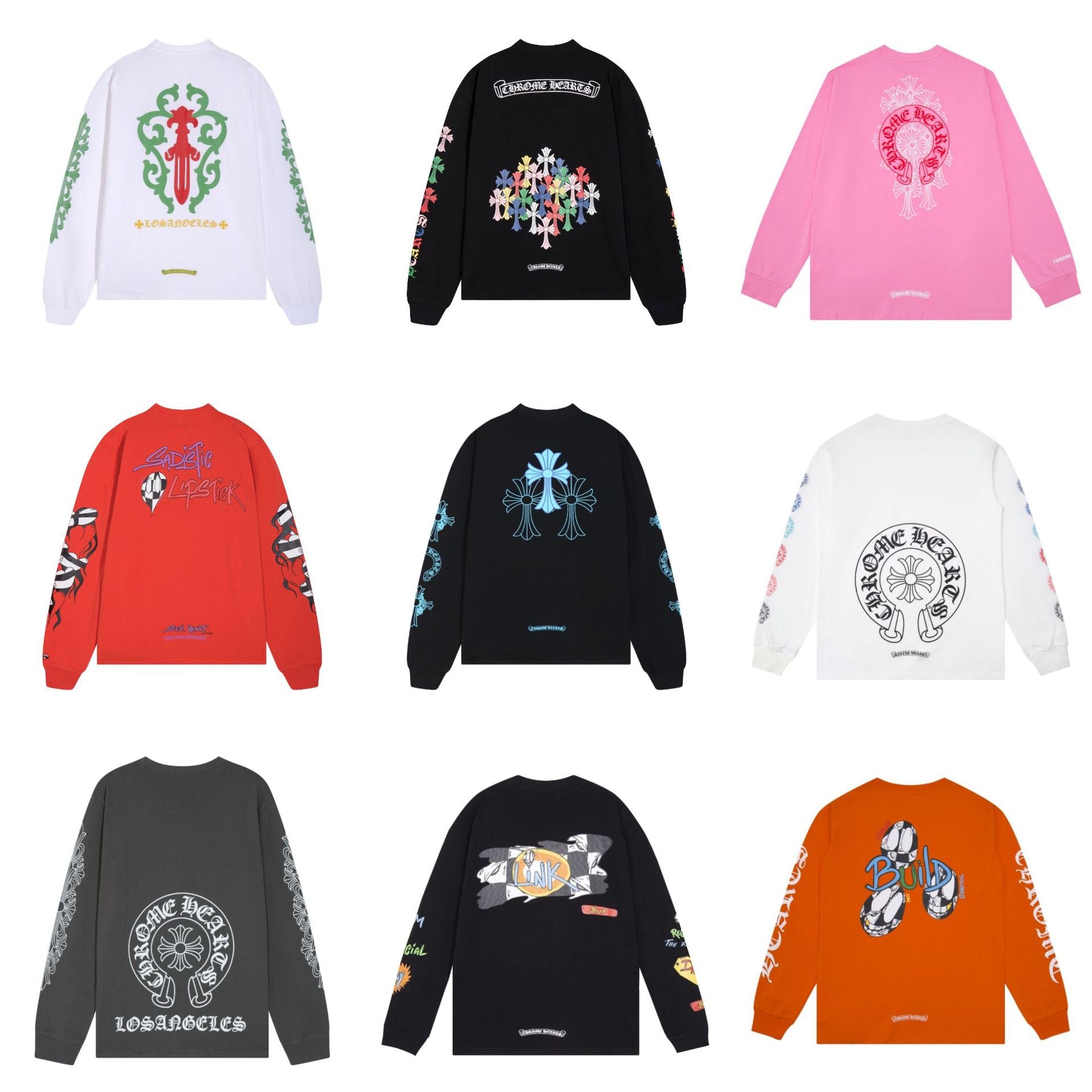 Chrome Heart Kro 伈 collection of high-quality double-yarn pure cotton printed long-sleeved T-shirts