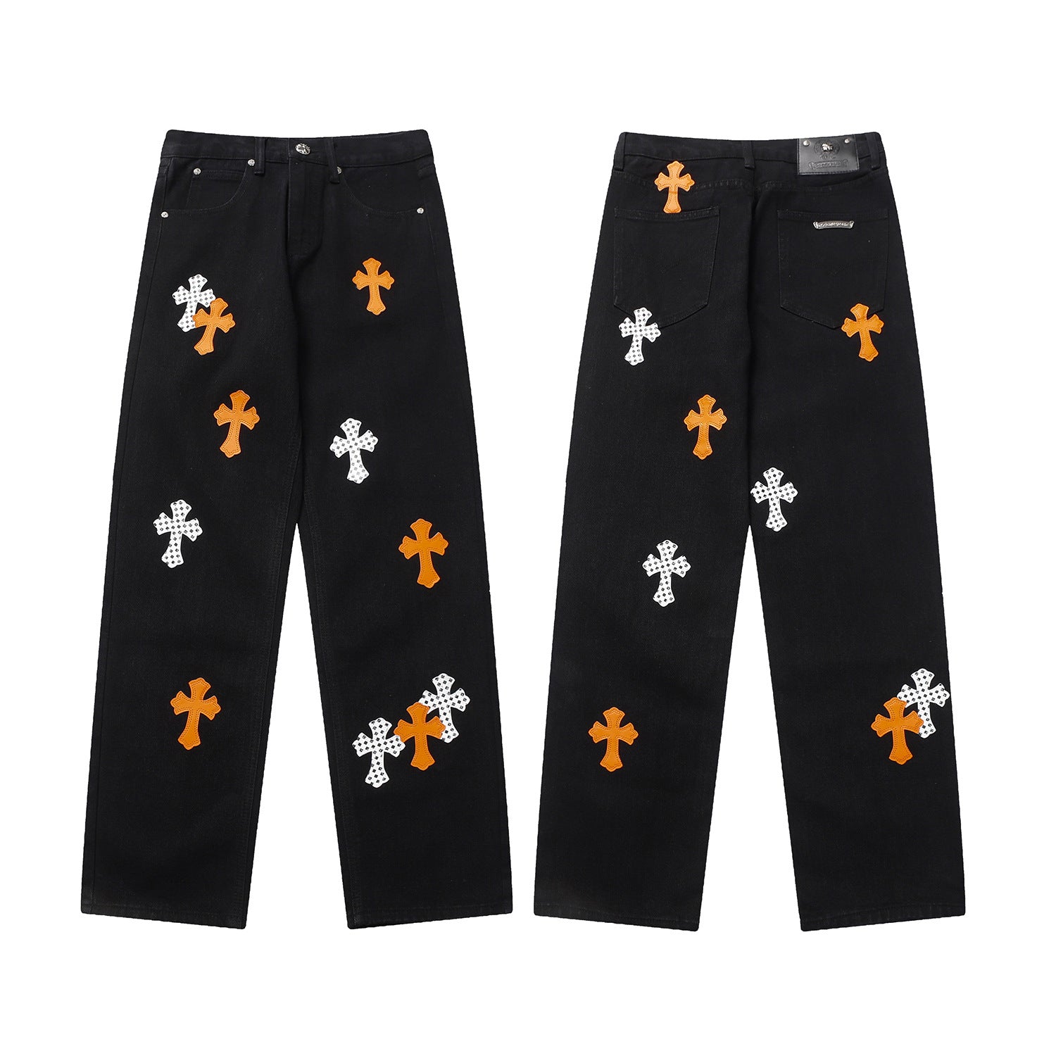Cross-stitched embroidered washed jeans, couple loose jeans